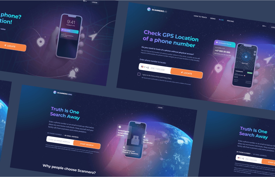 An easy-to-use app to track anyone’s location with just a phone number. Working online, Scannero can easily show the whereabouts of any cell phone number, no matter where they are. Scannero is an online service working without an app and physical access to a target device. Just by entering a phone number on a website, user can get the exact location of a target person within few minutes.